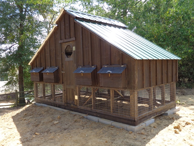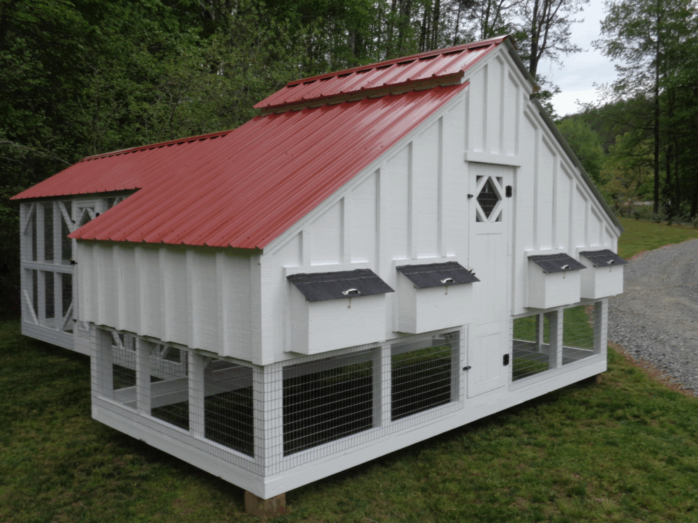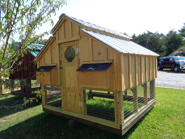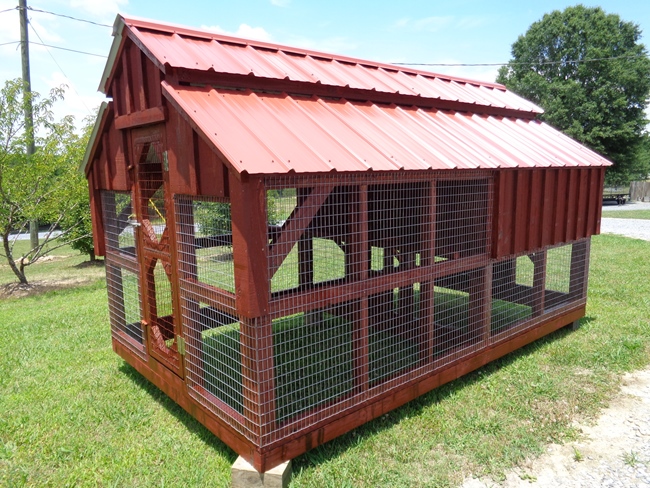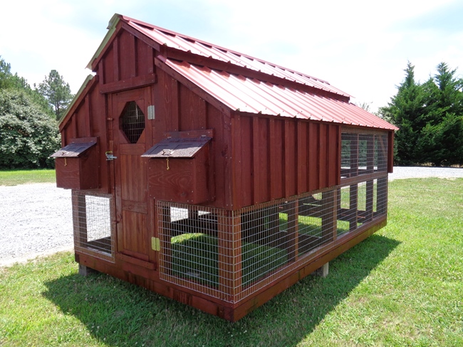 My Chicken Coop Houses are framed with Premium Prime Pressure Treated 2×4’s and set on and attached to a 4×4 Pressure Treated Base that is rated at 30 years so no need to worry about rot issues. My coops and runs are built and designed to sit right on the ground.